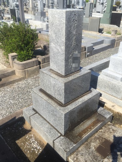 今日は白御影(しろみかげ)のクリーニングと彫刻文字のペイント入れ直しです。白系統の石は文字が読みにくい為、ペンキを入れることがよくあります。しかしながら年月と共に剥がれてしまい、余計に見えづらくなってしまいます。